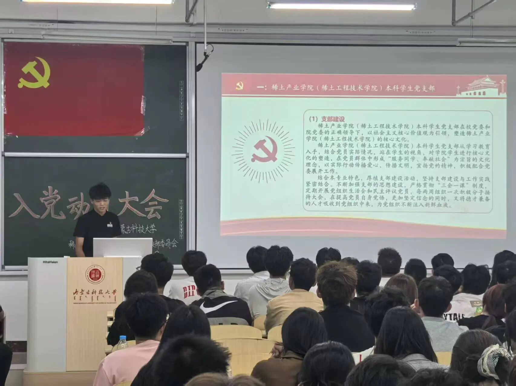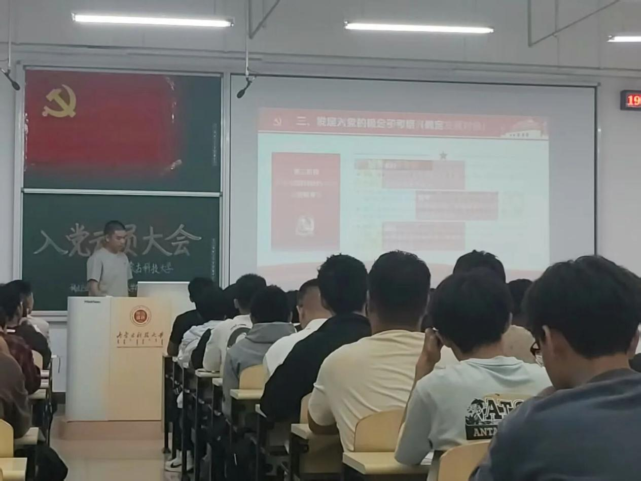 (稀土工程技术学院)本科学生党支部在逸夫楼G202与G203教室组织召开入党动员大会。