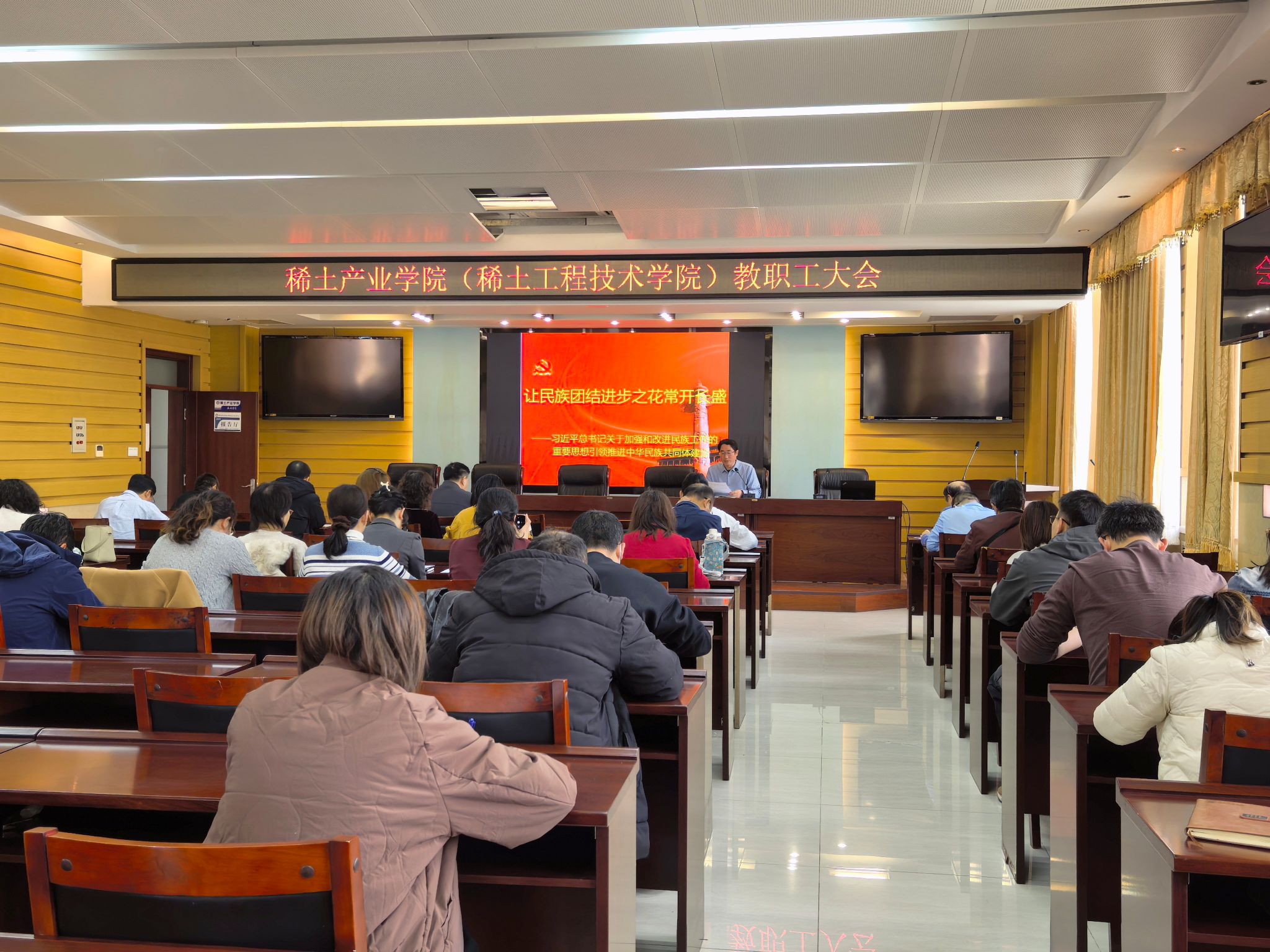 2026年3月12日下午2:30,做爱视频 在A405开展教职工政治理论学习-让民族团结进步之花常开长盛,认真学习领会习近平总书记关于加强和改进民族工作的重要思想,铸牢中华民族共同体意识。会议由学院党委副书记组织领学,学院全体教职工参加。