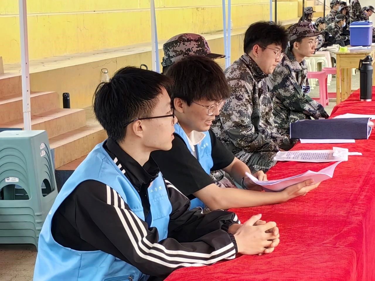 党委副书记 副院长冯佃臣实地了解军训的相关安排和训练情况,与参训新生和坚守在一线的辅导员亲切交流,详细了解他们的身体情况及需求。