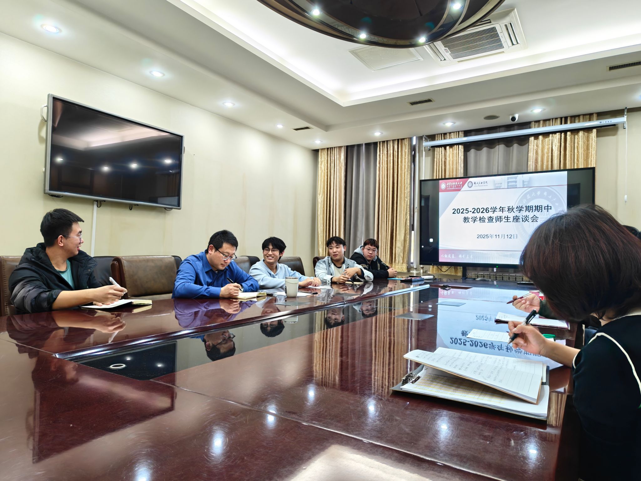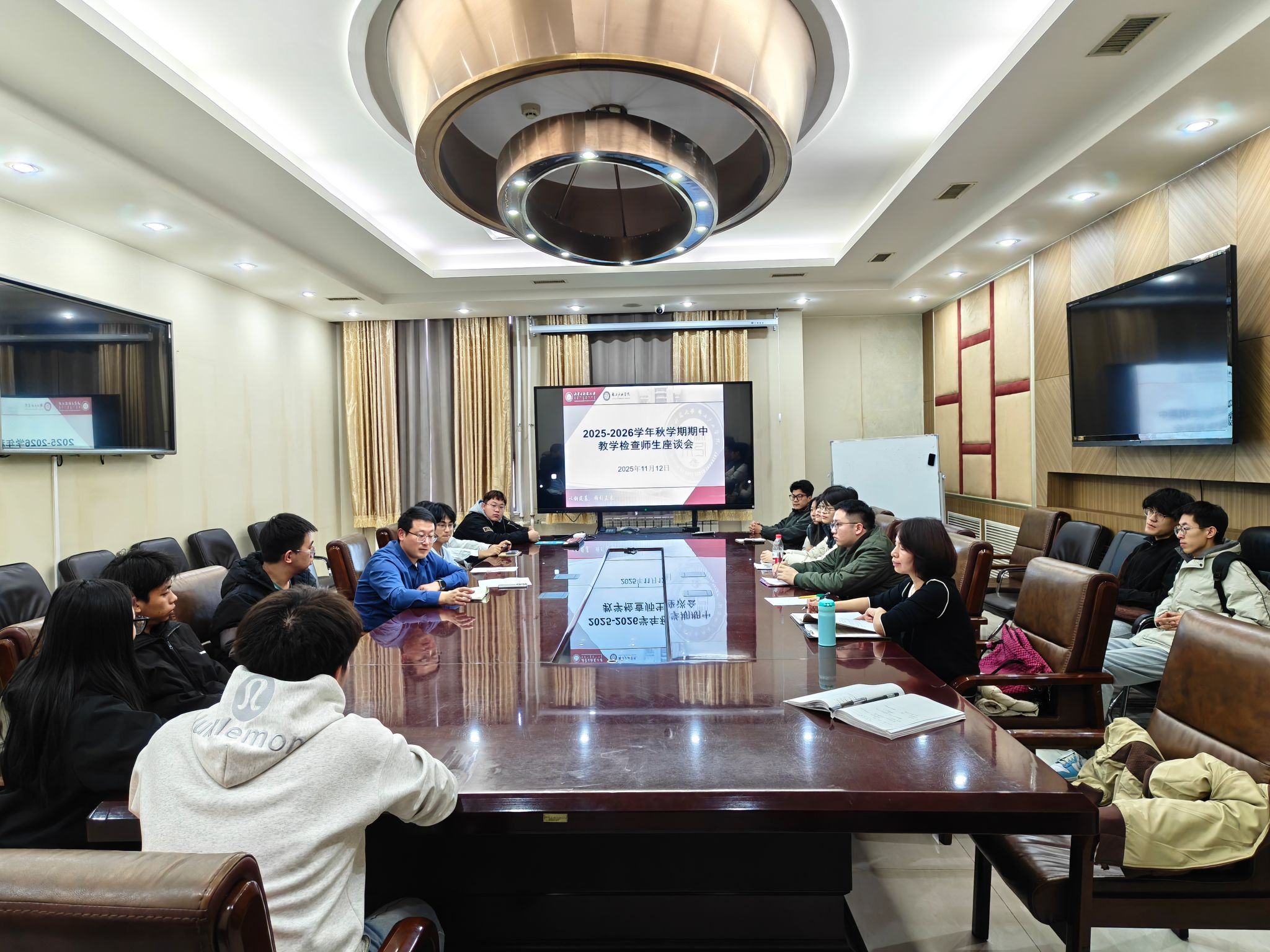 于2025年11月12日下午在学院A301会议室成功召开了2025-2026学年秋学期期中教学质量检查师生座谈会。