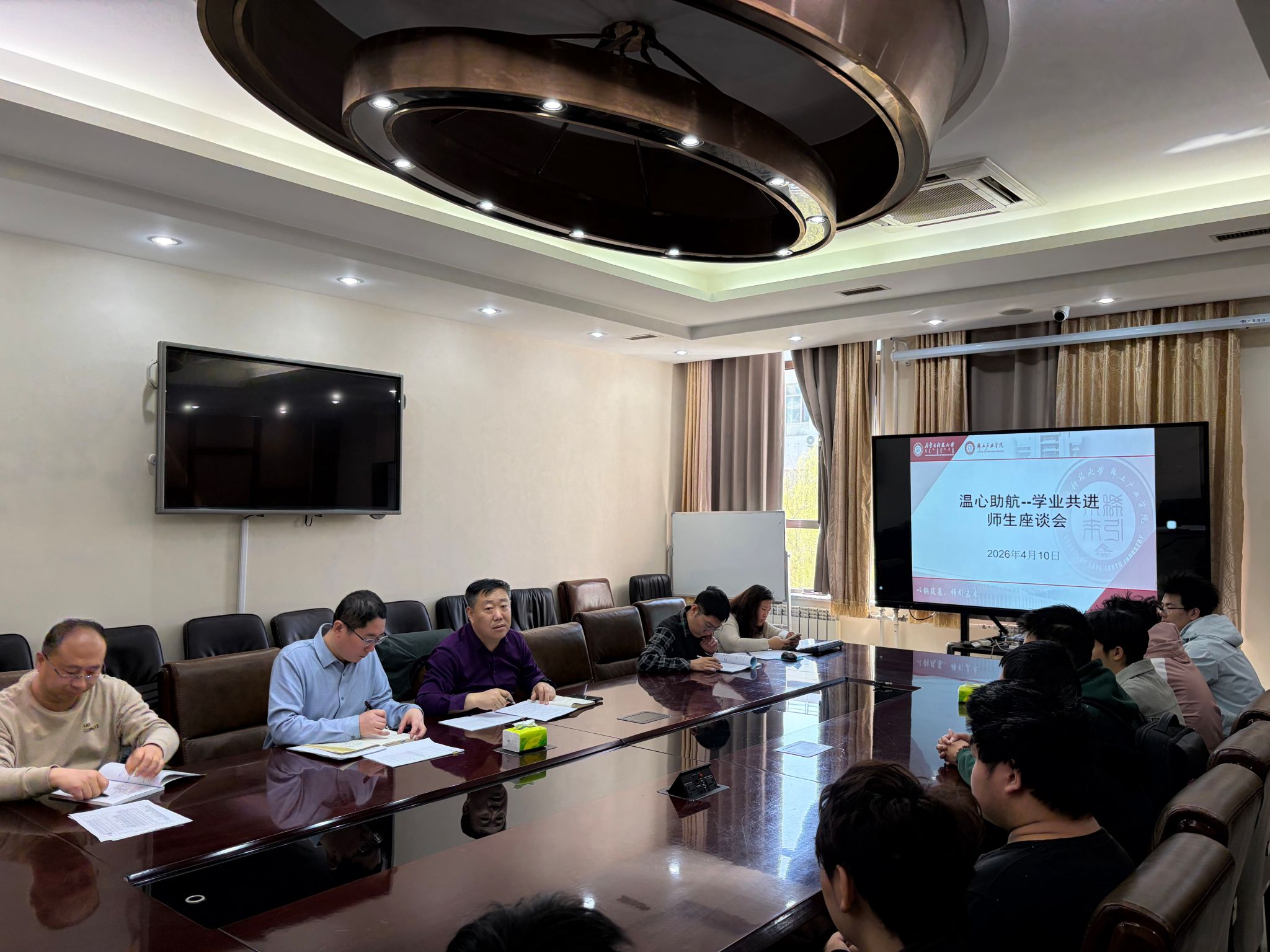 在学院A301会议室召开了题为“温心助航--学业共进”的学业预警学生帮扶座谈会。学院副书记胡显峰、学院教学副院长冯佃臣、教学办、学工办、相关班主任及学业预警学生参加座谈会。